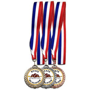 Antique Gold, Silver, Bronze Medal with Red, White, Blue 7/8″ Neck Ribbon